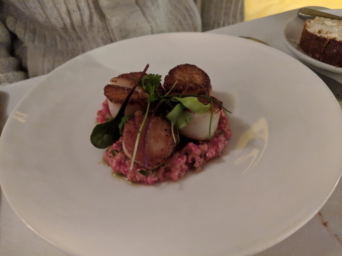 A lovely spot for an anniversary dinner. The indoor dining space is cozy and romantically lit. We adored all the little touches put into the ambiance, food, and dining experience. There is a covered patio attached to the restaurant as well and seemed to be plenty of street parking spots available. The menu is a four course meal with several items in each section to choose from. Everything we had was great, from the fresh pastry starters to the mains. My partner opted for the wine pairing which had very generous pours. We’d definitely go back for a special occasion!