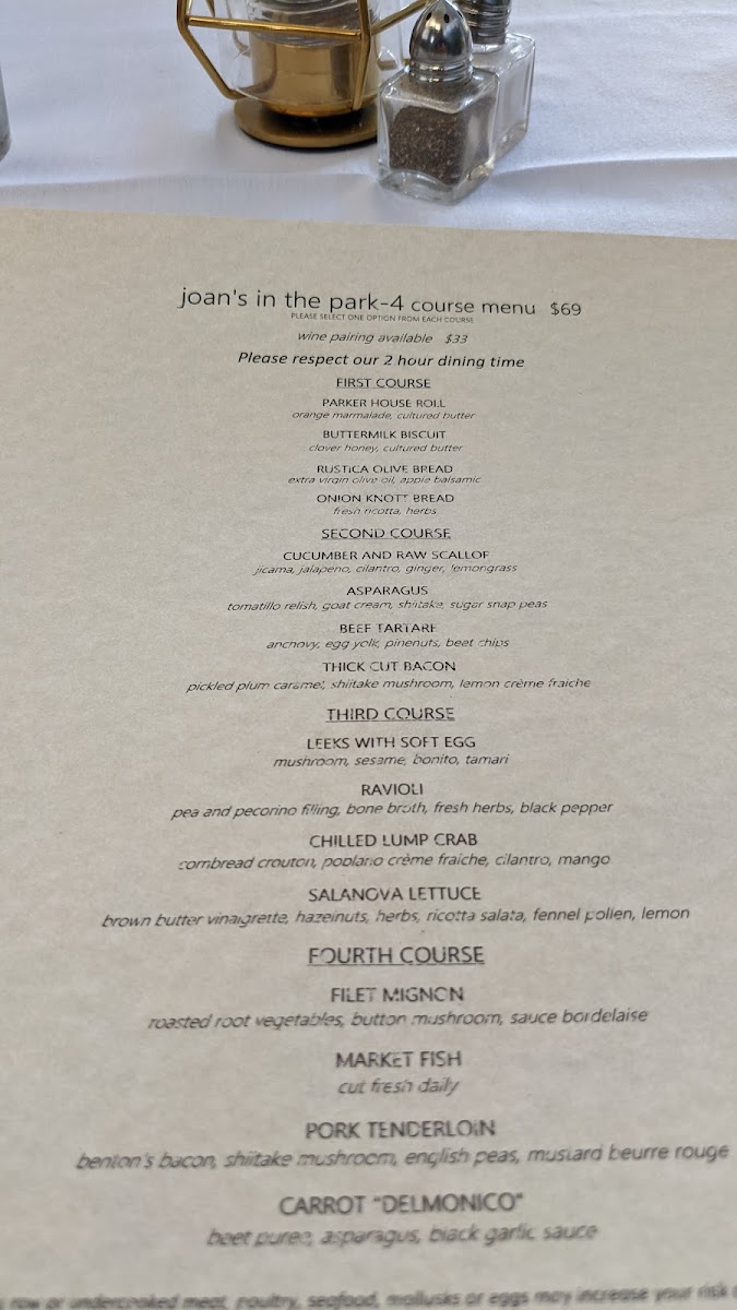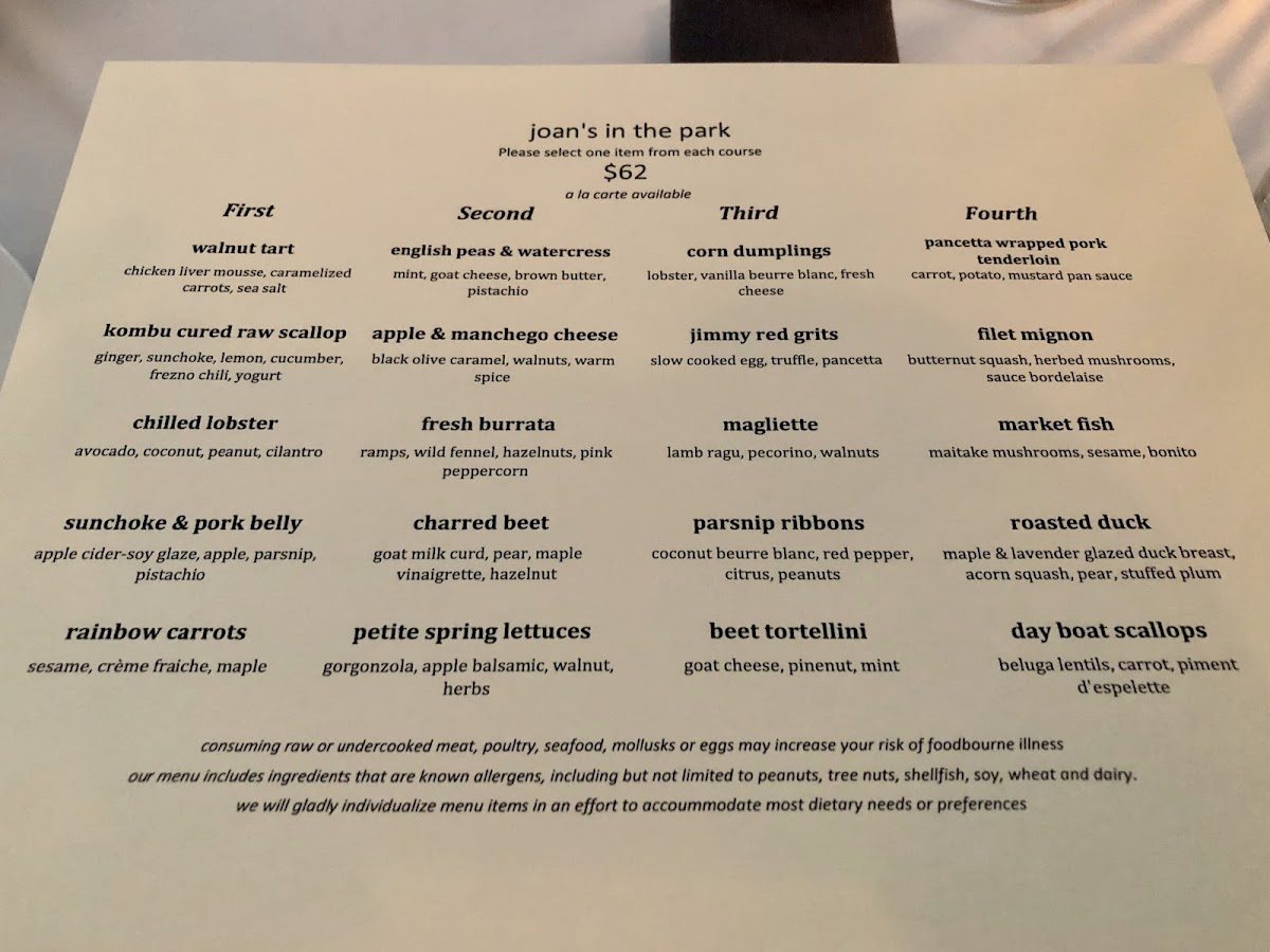 Joan's in the Park Menu