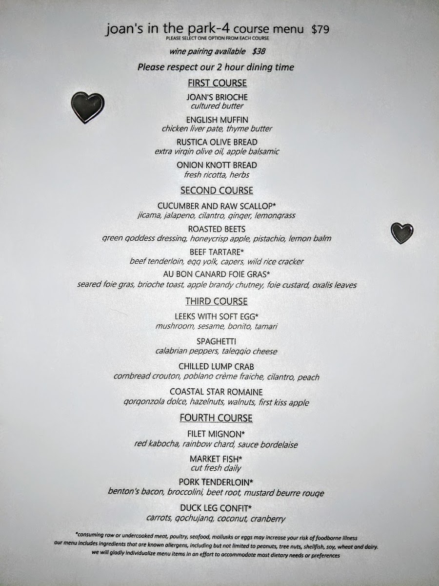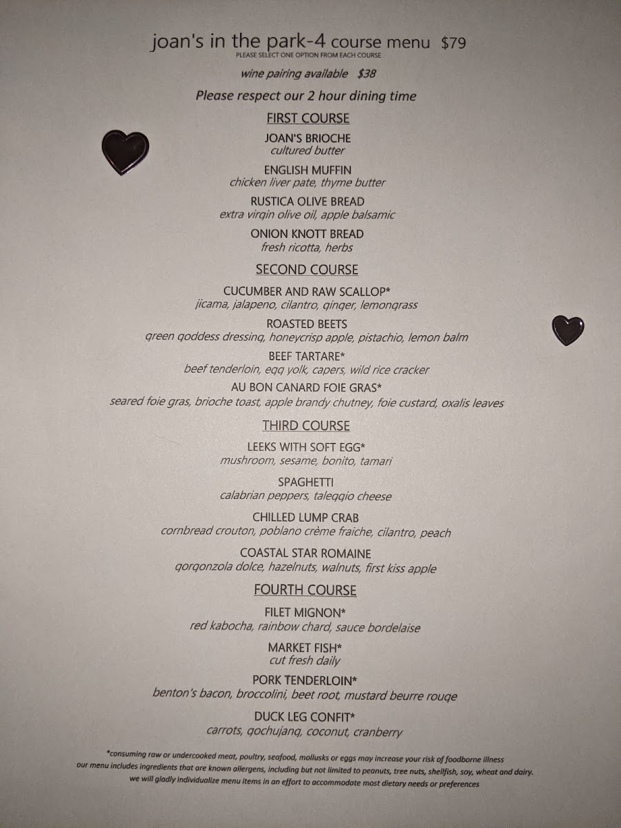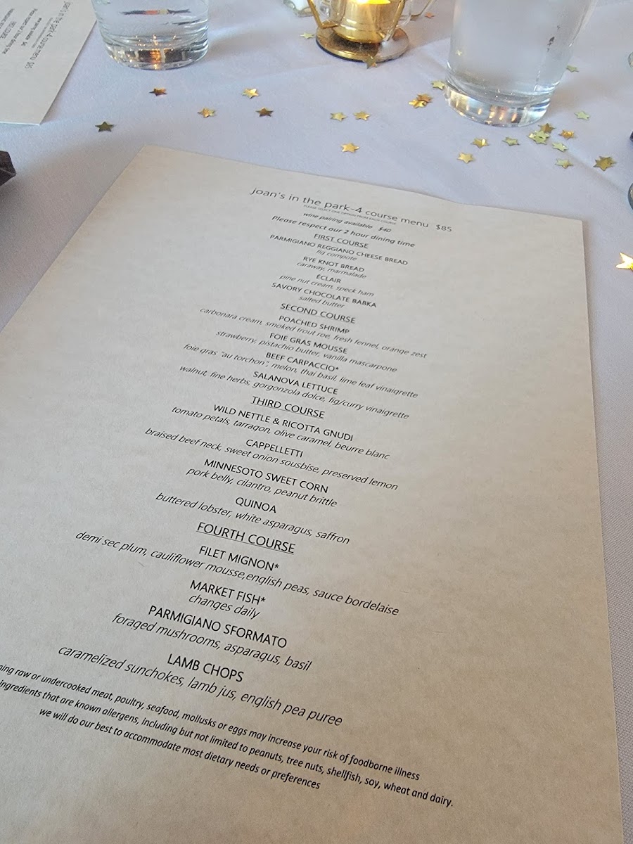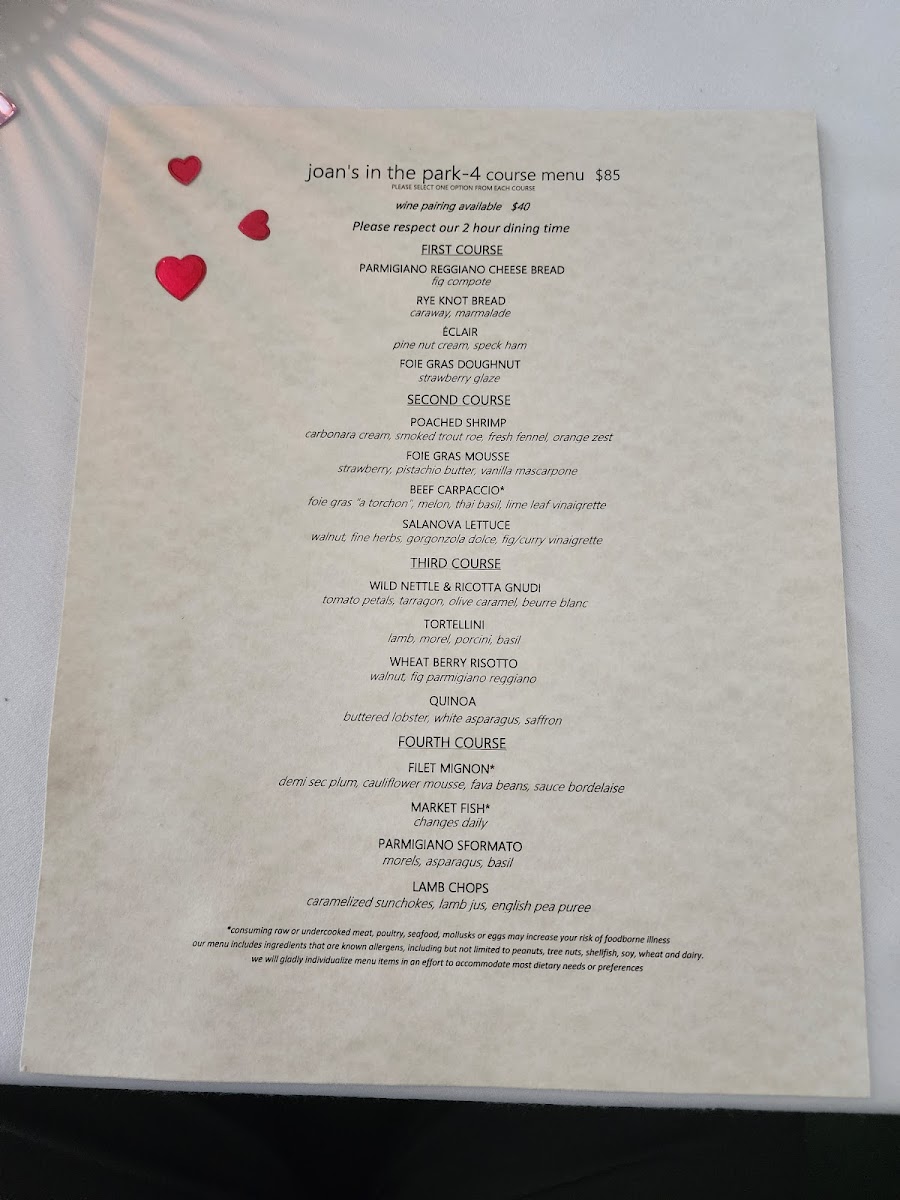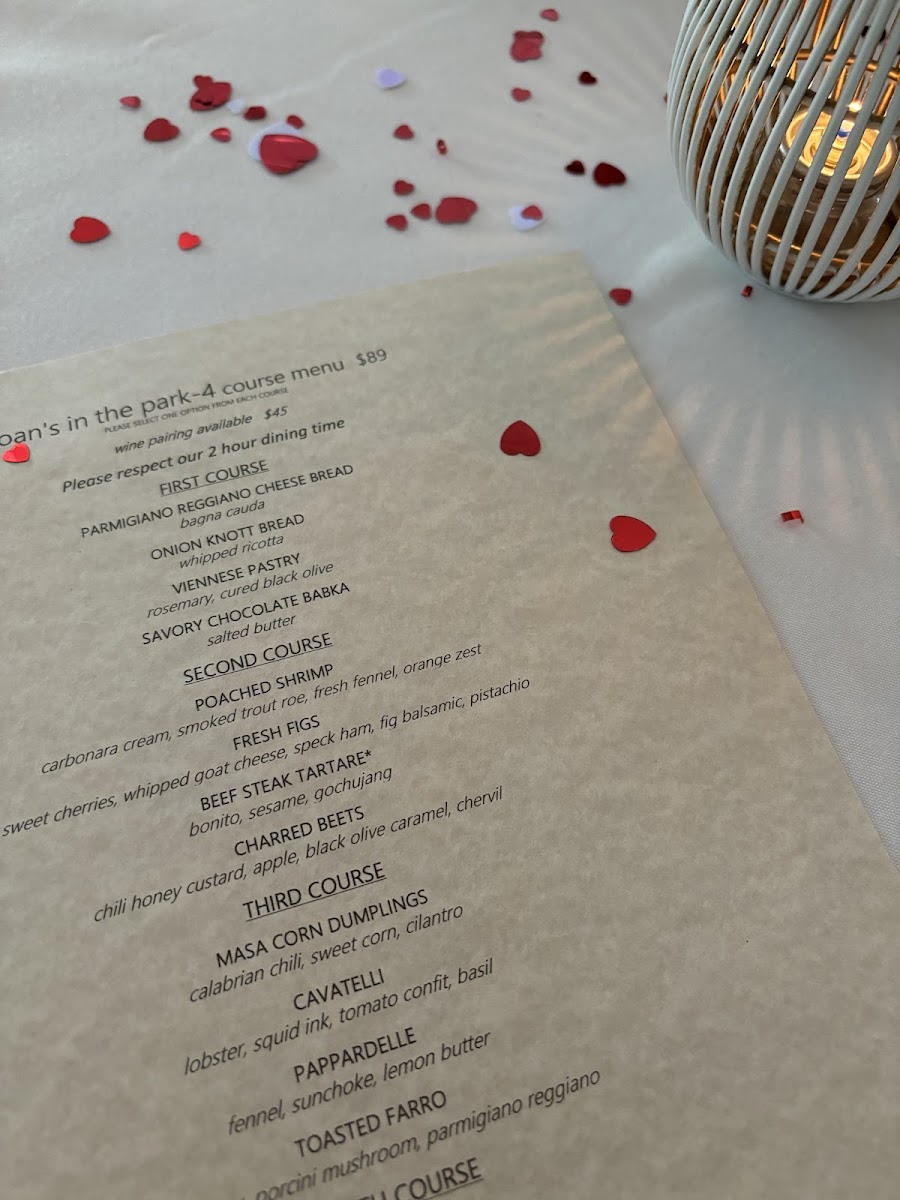 The menu at Joan's in the Park offers a thoughtfully crafted selection that strikes a balance between approachable comfort and refined flavors. It’s the kind of menu where you’ll find dishes that invite you to linger over a relaxed dinner, whether you’re marking a special occasion or simply savoring a quiet evening out.